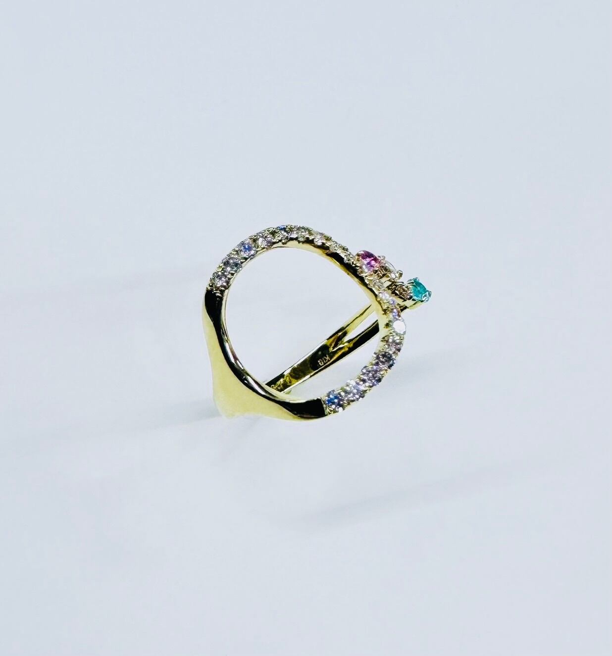 K18パライバトルマリン/ピンクサファイヤ/イエローサファイヤ/ダイヤモンドピンキーリング